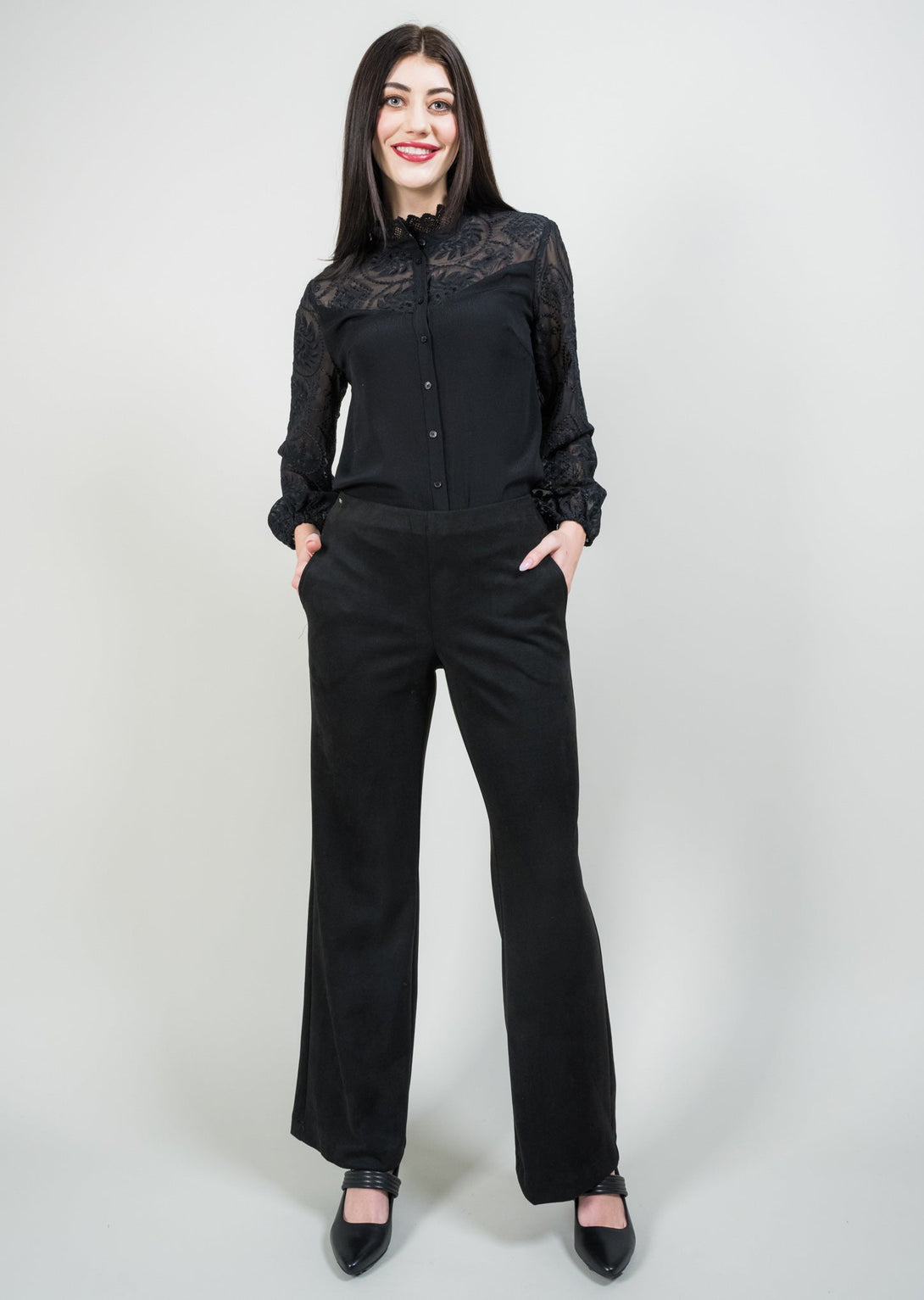 Crafted from plush suede, the Elena wide-leg pant combines warmth and sophisticated style for cooler seasons. Featuring a 31" inseam, a roomy 10" knee, and an 11" leg opening, its relaxed silhouette offers both comfort and modern flair. Highlighted by a unique novelty pocket, this design detail adds a distinctive touch to elevate any outfit with expert precision.