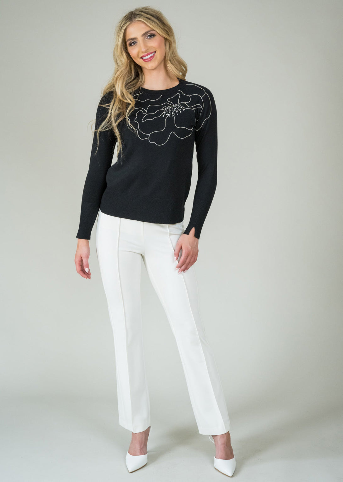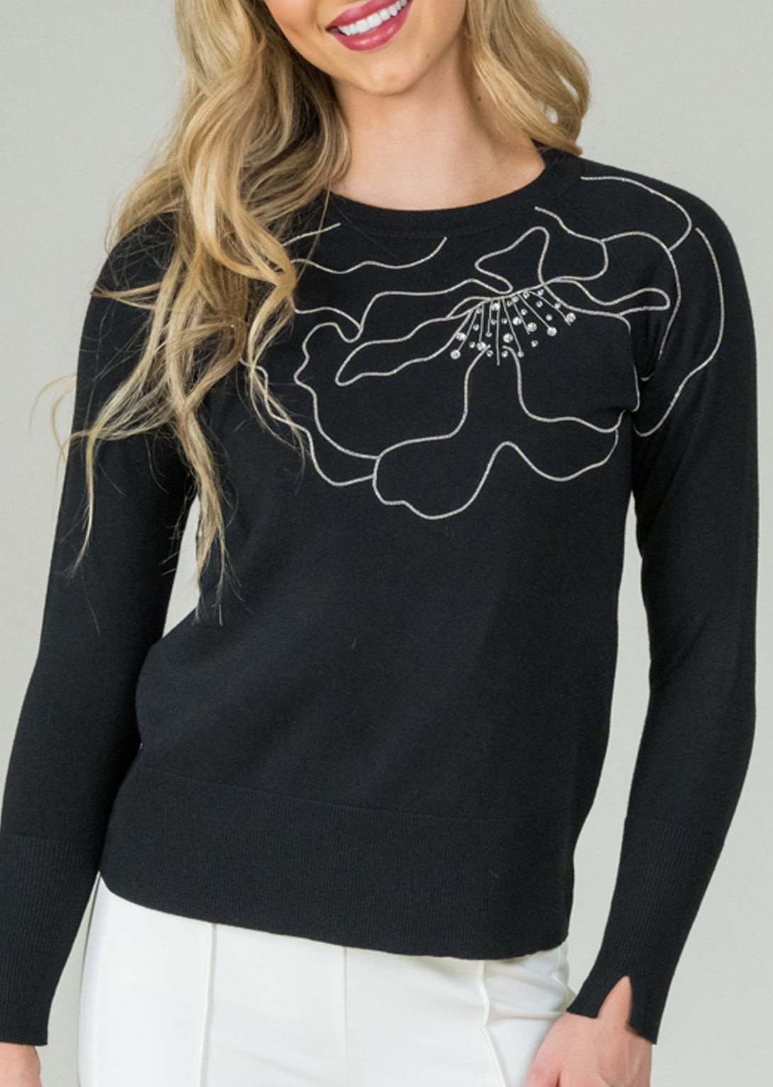 Haley Fabric 22 1/2" Round Neck Sweater With Chained Flower
