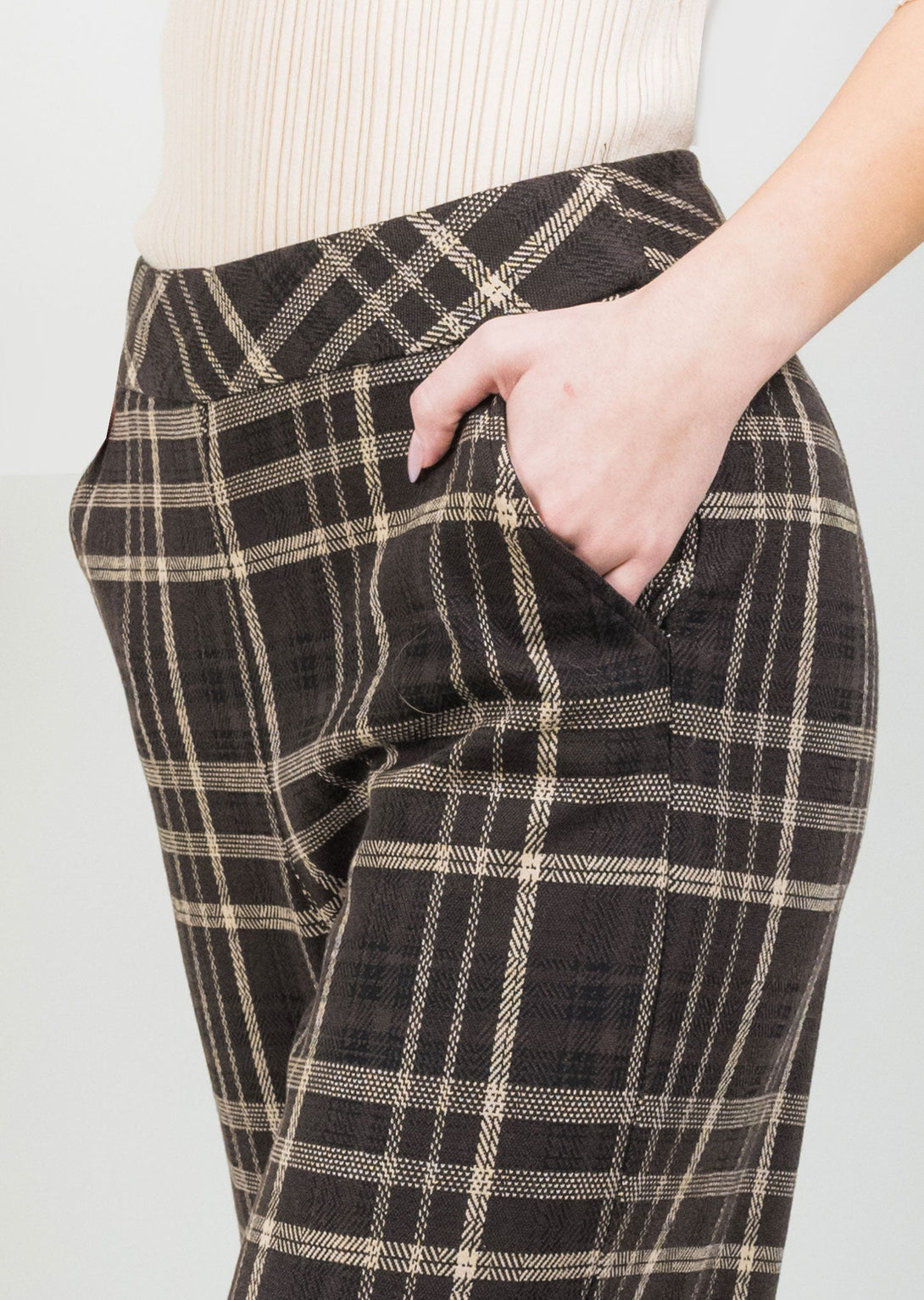 Mocha Plaid 25" Wide Crop Pant