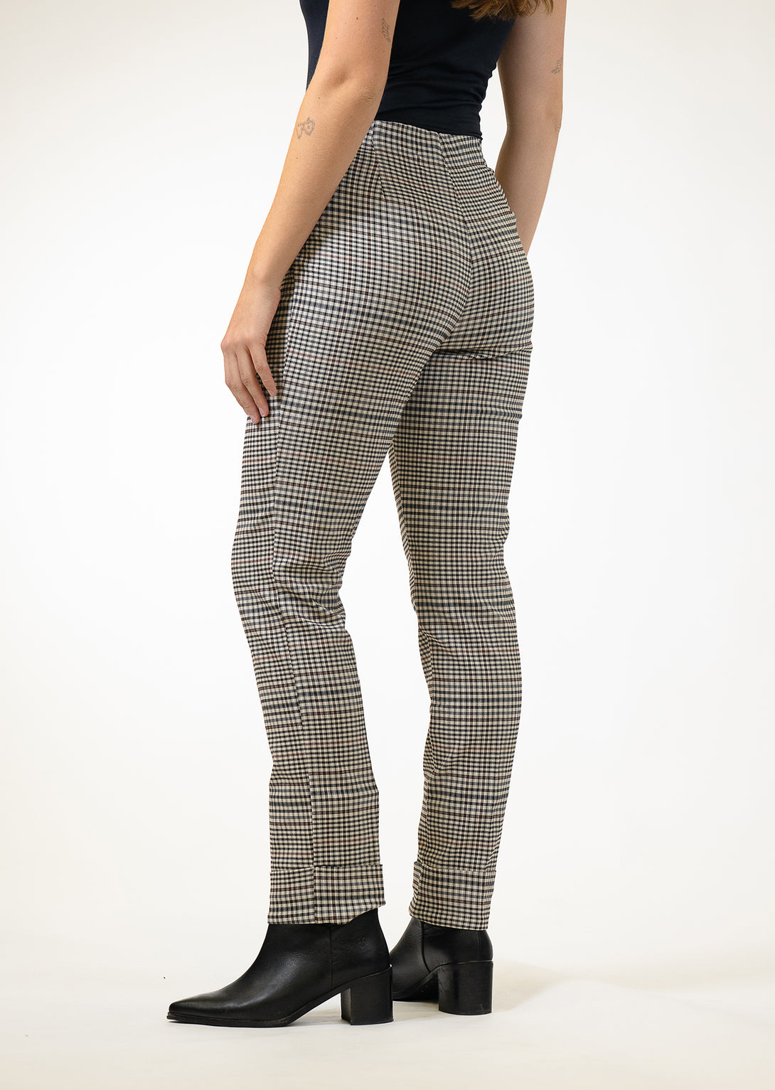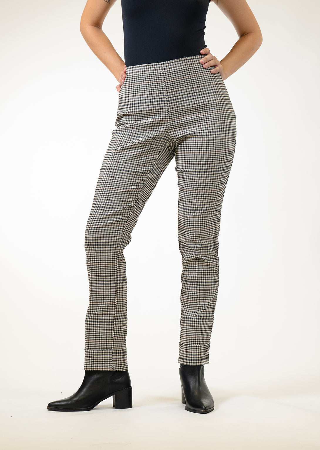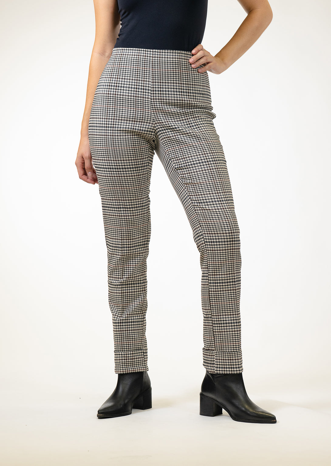 Our Scarlett Check Cuffed Pants feature a timeless multicolored pattern with subtle burgundy accents, making them both trendy and unique.