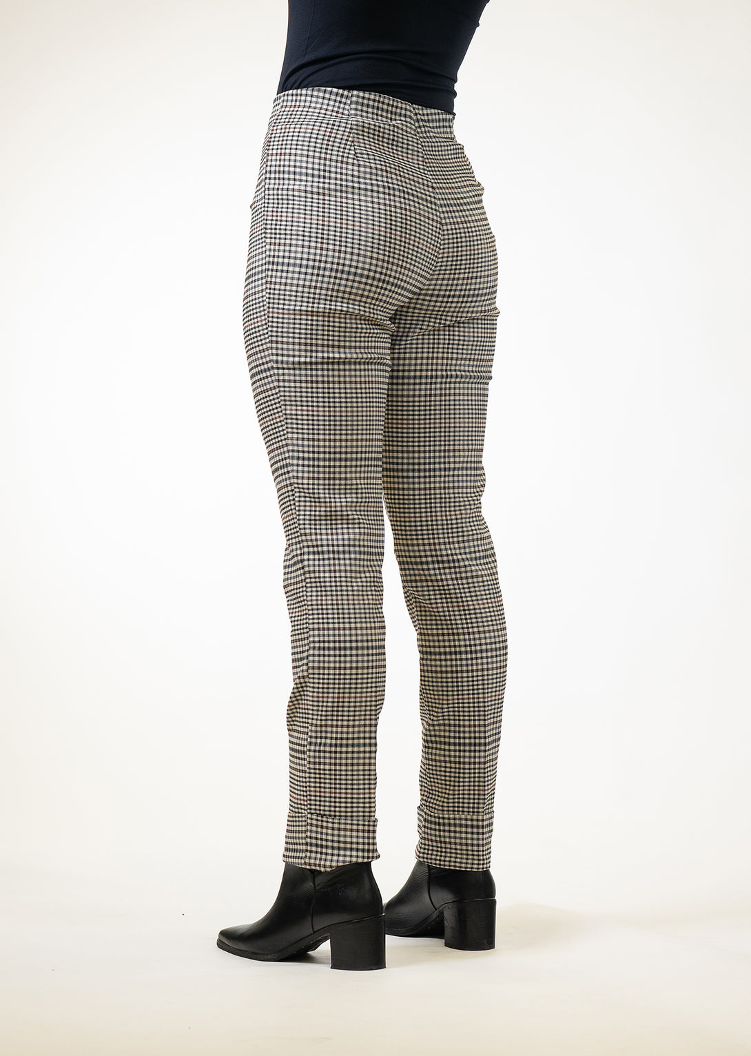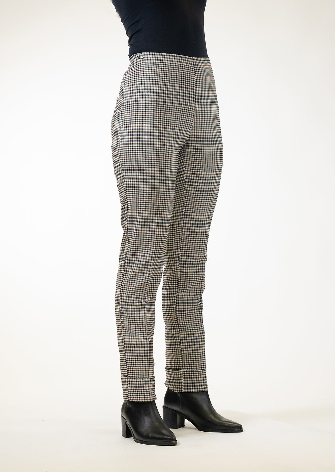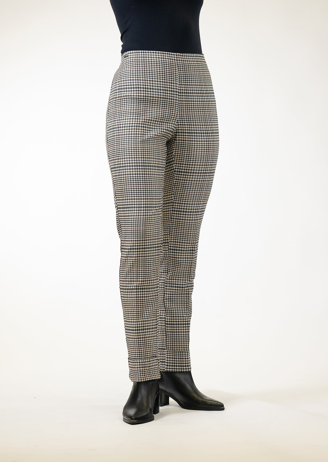 Our Scarlett Check Cuffed Pants feature a timeless multicolored pattern with subtle burgundy accents, making them both trendy and unique.