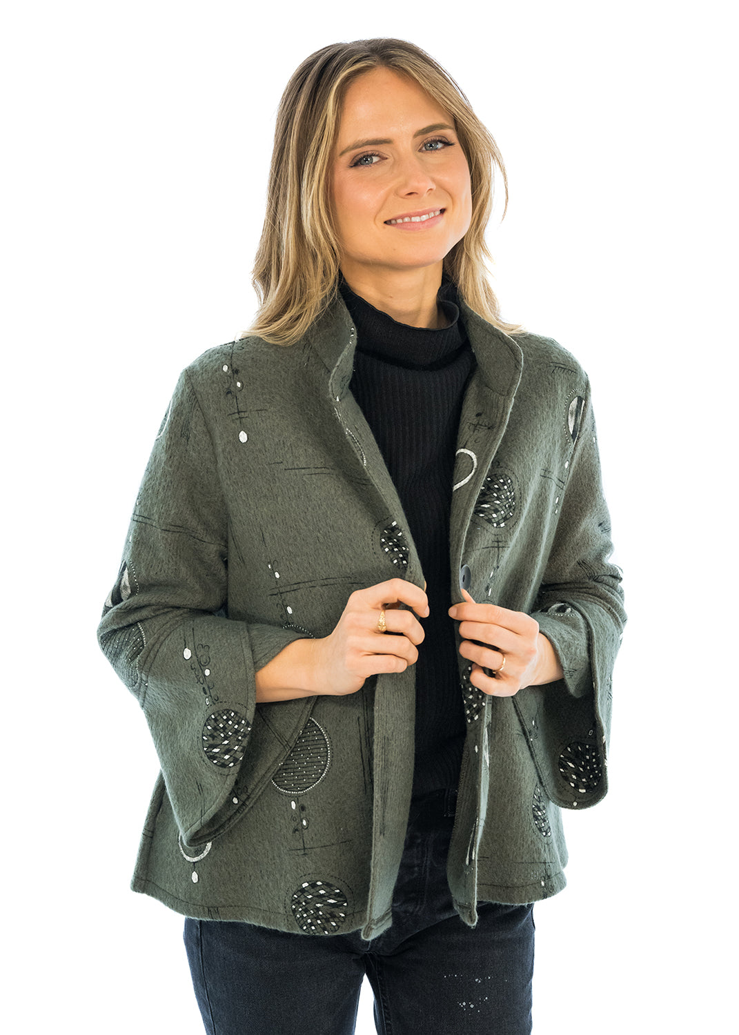 Split Bell Sleeve Mandarin Collar Btn Front Jacket