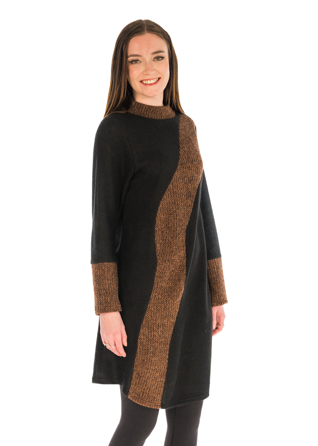 Elevate your wardrobe with this sophisticated dress featuring strategically placed contrast panels that create visual dimension and a flattering silhouette. The interplay of complementary colors adds contemporary flair while the panel construction provides structure and movement. Perfect for transitioning from office to evening, this versatile piece pairs effortlessly with accessories for countless styling possibilities. A modern essential that combines design intelligence with wearable elegance.