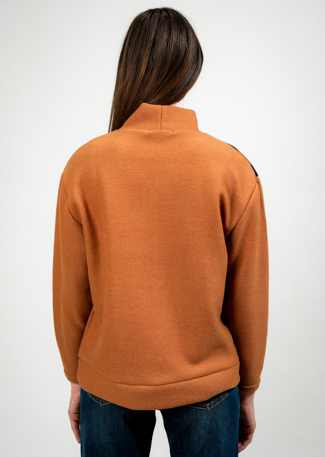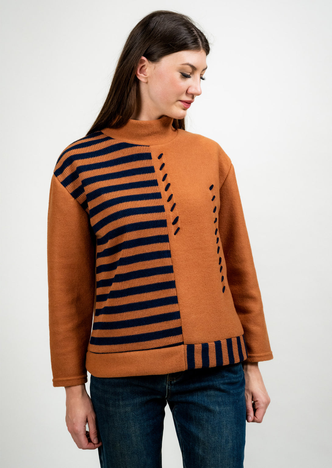 ASSYMETRIC STRIPE PANELED MOCKNECK SWEATER