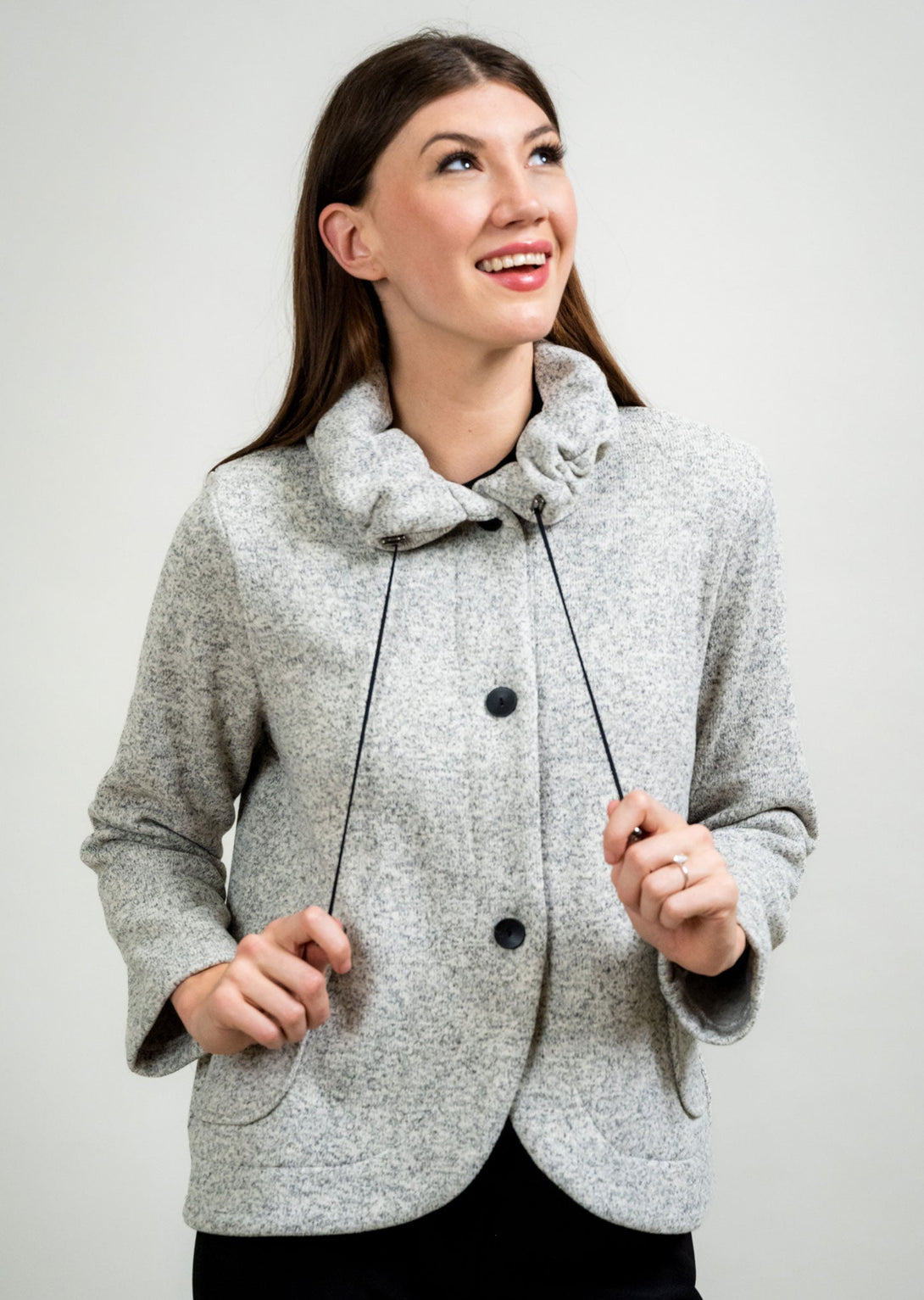 TULIP HEM BUTTON FRONT POUFF COLLAR JACKET